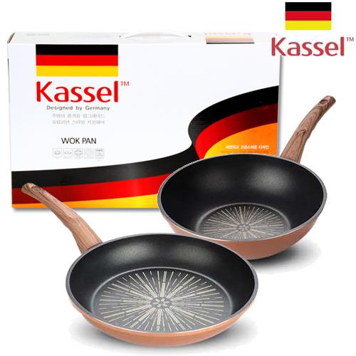 [kassel] 티타늄코팅 실리콘 손잡이 후라이팬 2종세트[28CM후라이팬+28CM궁중팬]