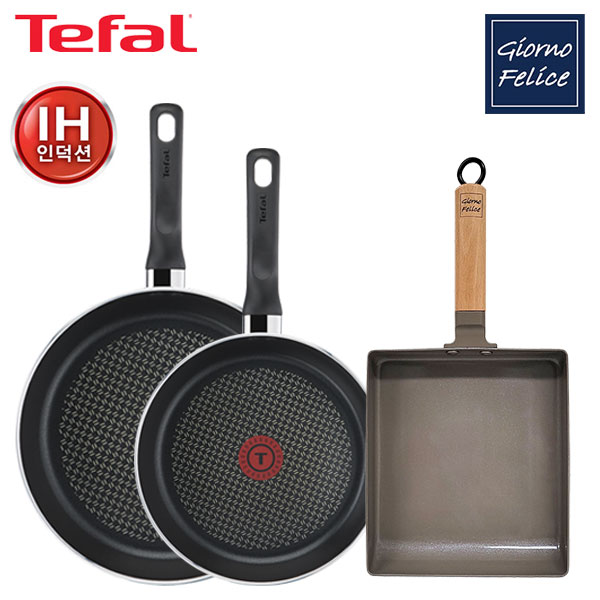 [테팔] IH 초콜릿 티타늄 프로 프라이팬 2종+[죠르노펠리체] IH 멀티 사각팬 라지 TFC-IC48ISBL